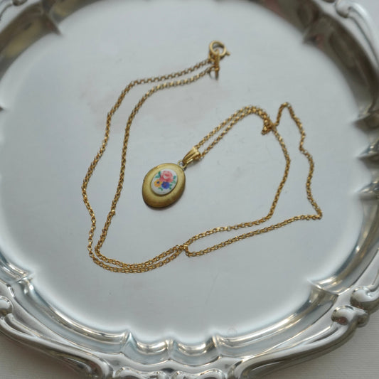 70s vintage tiny oval locket-flower